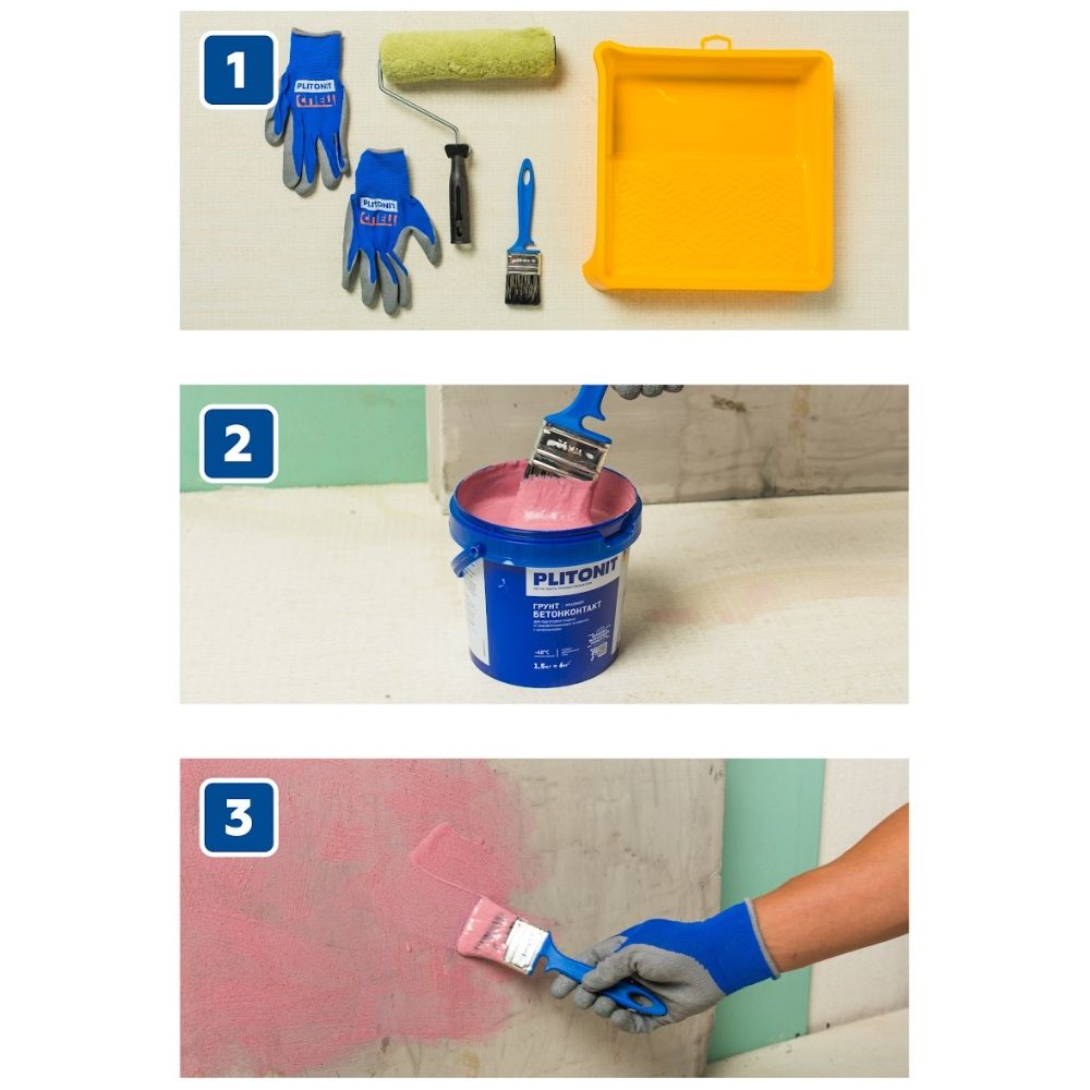 Продукт предназначен для предварительной обработки оснований с низким водопоглощением (монолитный бетон, плиты перекрытий, бетонные блоки, цементные штукатурки и т.п.) перед проведением штукатурных, облицовочных работ и работ по устройству полов. Обладает высокой кроющей способностью, грунтовка стен и полов из бетона обеспечивает улучшение сцепления наносимых поверх покрытий – цементных, гипсовых, известково-цементных, известково-гипсовых и полимерных составов.