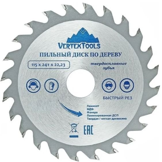 Пильный диск VertexTools (Вертекстулс) по дереву 115х24тх22.23 115-24-22