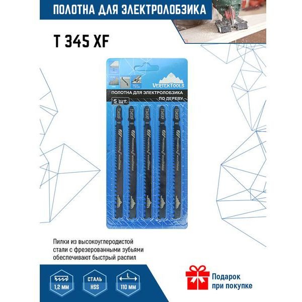 Полотно для электролобзика VertexTools (Вертекстулс) 5 шт T345XF