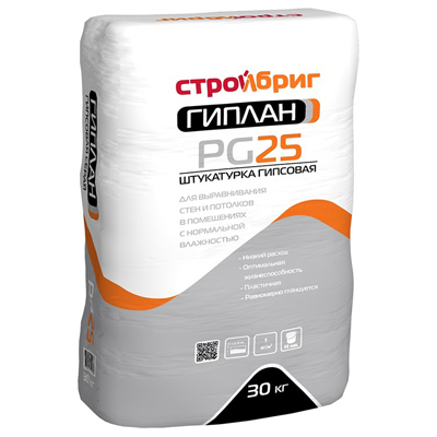 Сухая штукатурная смесь Стройбриг Гиплан PG25 изготовлена на основе гипсового вяжущего с использованием специальных химических добавок. Применяется для выравнивания стен и потолков из бетона, газобетона, кирпича и цементной штукатурки внутри помещений с нормальной влажностью перед финишным шпатлеванием.