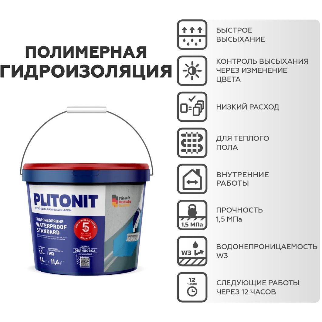 Гидроизоляция эластичная Plitonit (Плитонит) WaterProof Standard 14 кг