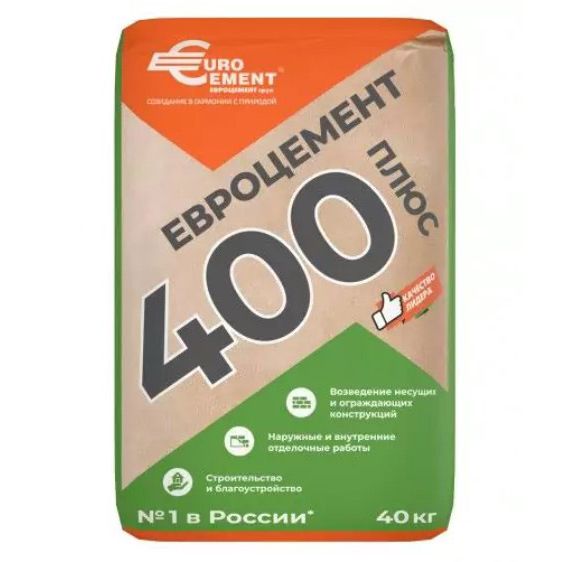 Смесь цементная Евроцемент М-400 Плюс - это готовый к применению сухой состав на основе портландцемента марки М-400, предназначенный для проведения различных строительных и ремонтных работ. Материал используется для изготовления прочных бетонных и растворных смесей, обеспечивая надежное сцепление и долговечность конструкций.